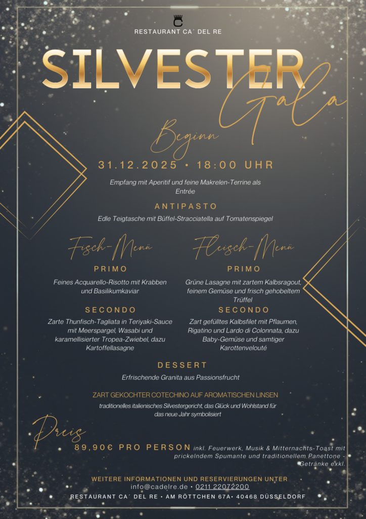Cenone di Capodanno im Ca’ del Re – Silvester 2025 in Düsseldorf